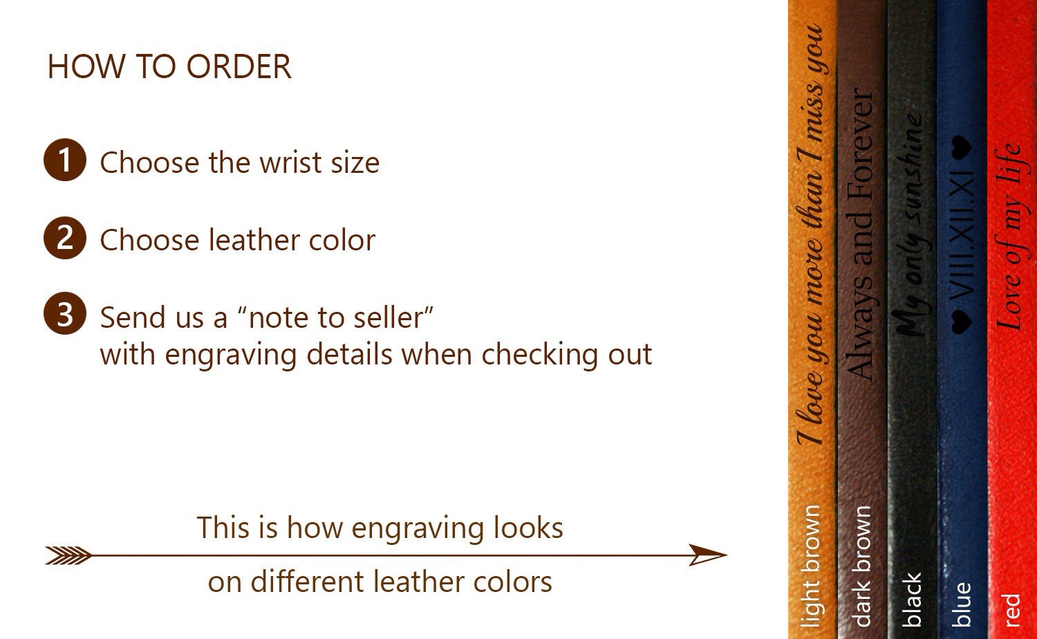 3. Send personalization details in the "note to seller" when checking out. Please mention the font # (see pic 5) and color of the clasp (bronze or silver).