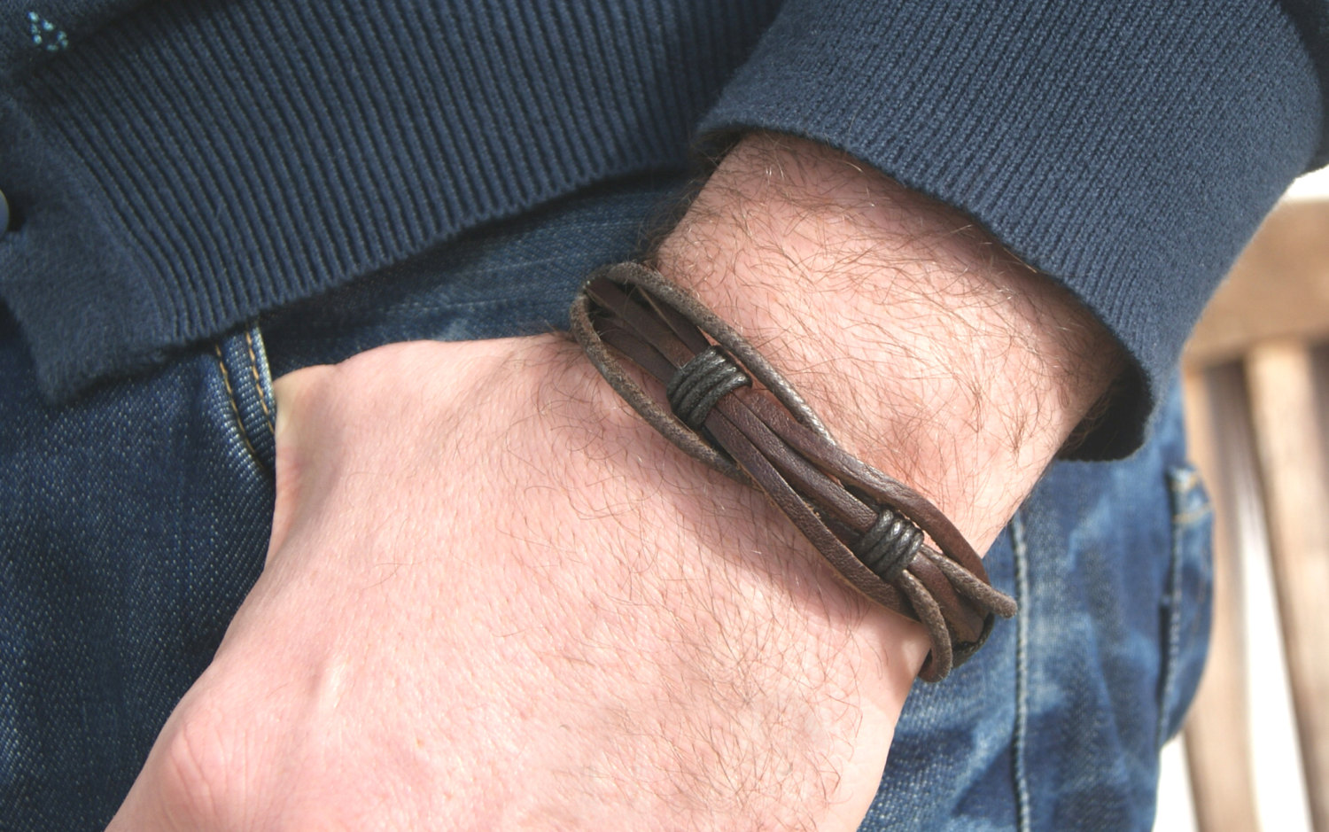 Stunning Mens Leather bracelet made of Genuine dark brown leather. It manifests a true rustic charm and authentic look. It´s about an inch wide at the widest part.