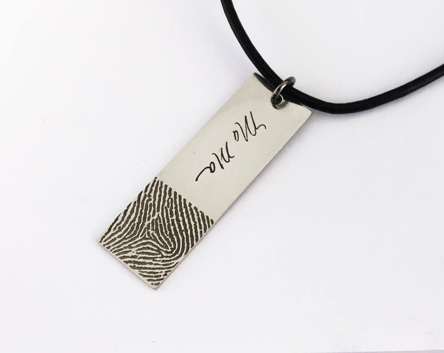 Sympathy Gift Fingerprint Necklace Actual Handwriting Fingerprint Jewelry Bereavement Jewelry Memorial Gift Keepsake Mens Leather Necklace