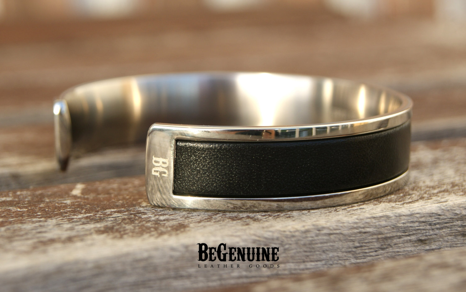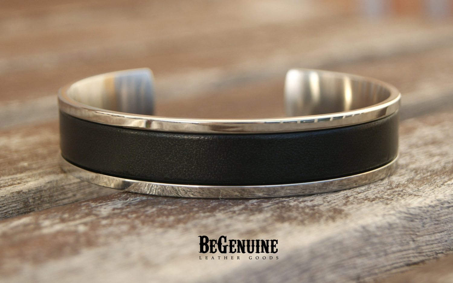 Stainless Steel Cuff with Genuine leather Inlay make a stand out, fabulous piece of men's jewelry. Made with high quality Genuine European Leather and high quality Stainless Steel. Width of the bracelet 0.6in (15mm) wide. One size bracelet, will fit most wrists, so you don't have to worry if your gift will be the right size. Super easy to wear!